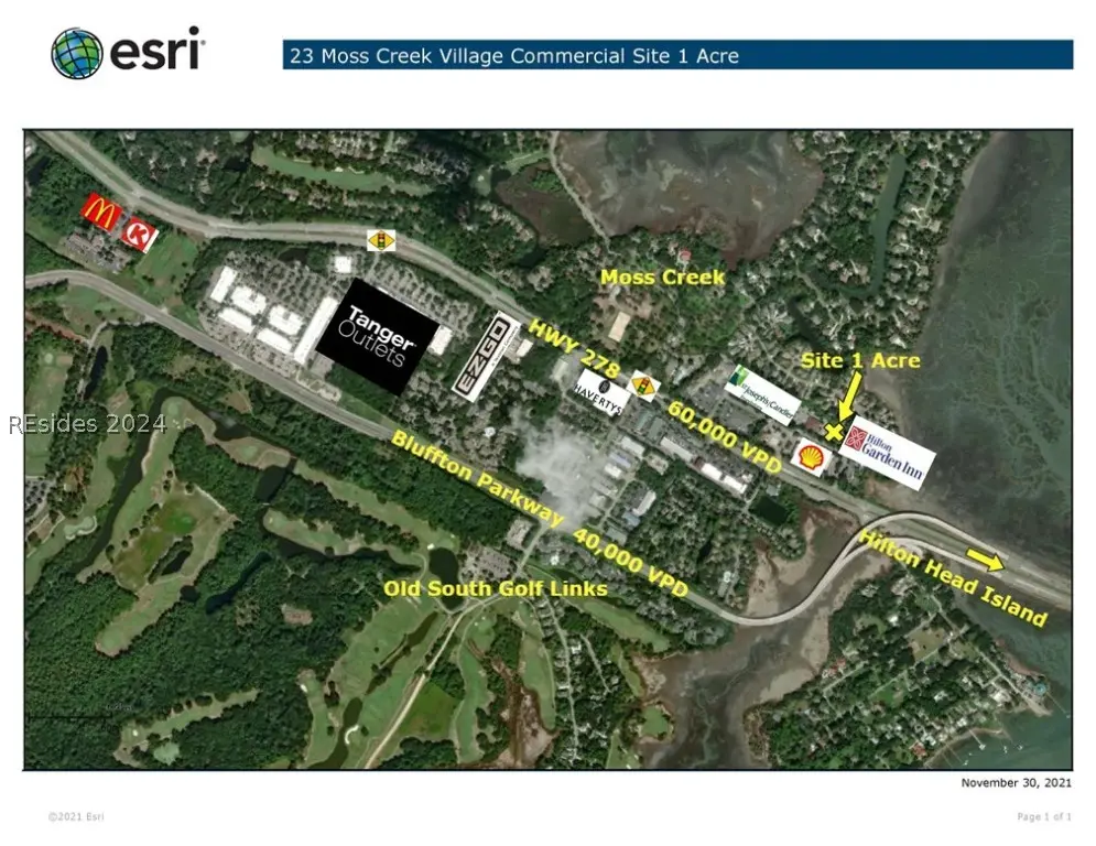 Last commercial lot in Moss Creek Village, 90% pad ready with retaining wall and grade fill in place. All utilities to site as well as off-site storm water retention. Zoning was upgraded to a more general commercial use that allows for office/medical as well as some retail uses. The site is behind the Shell gas station and adjacent to the Hilton Garden Inn.